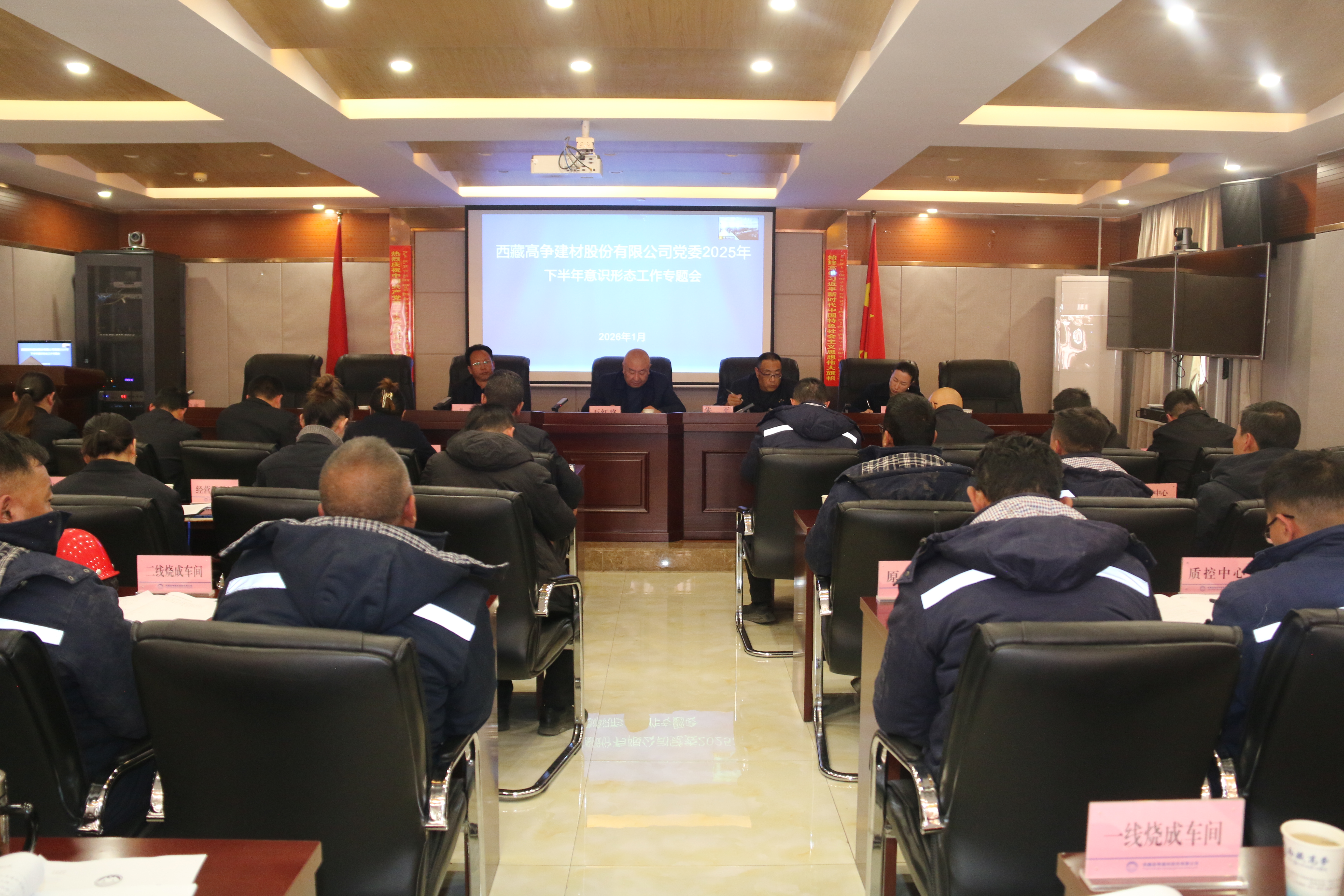 2026年1月7日,西藏高爭建材股份有限公司黨委召開2025年下半年意識形態(tài)工作專題會。高爭股份黨委書記、董事長萬紅路主持會議,公司在家領(lǐng)導(dǎo)、各車間、各部門、子公司負責(zé)人及機關(guān)全體黨員參加會議。
