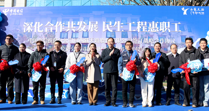 ? 12月1日上午,以“深化合作共發(fā)展 民生工程惠職工”為主題的戰(zhàn)略合作簽約暨中國電信拉薩分公司新建職工周轉(zhuǎn)房交房儀式順利舉行。西藏建工建材集團(tuán)有限公司黨委書記、董事長莊存?zhèn)?,中國電信西藏公司黨委書記、總經(jīng)理張世敏出席儀式講話,見證戰(zhàn)略協(xié)議簽約,并為新建周轉(zhuǎn)房揭牌。 ? ? ? 西藏天路股份有限公司黨委書記、董事長頓珠朗加,中國電信